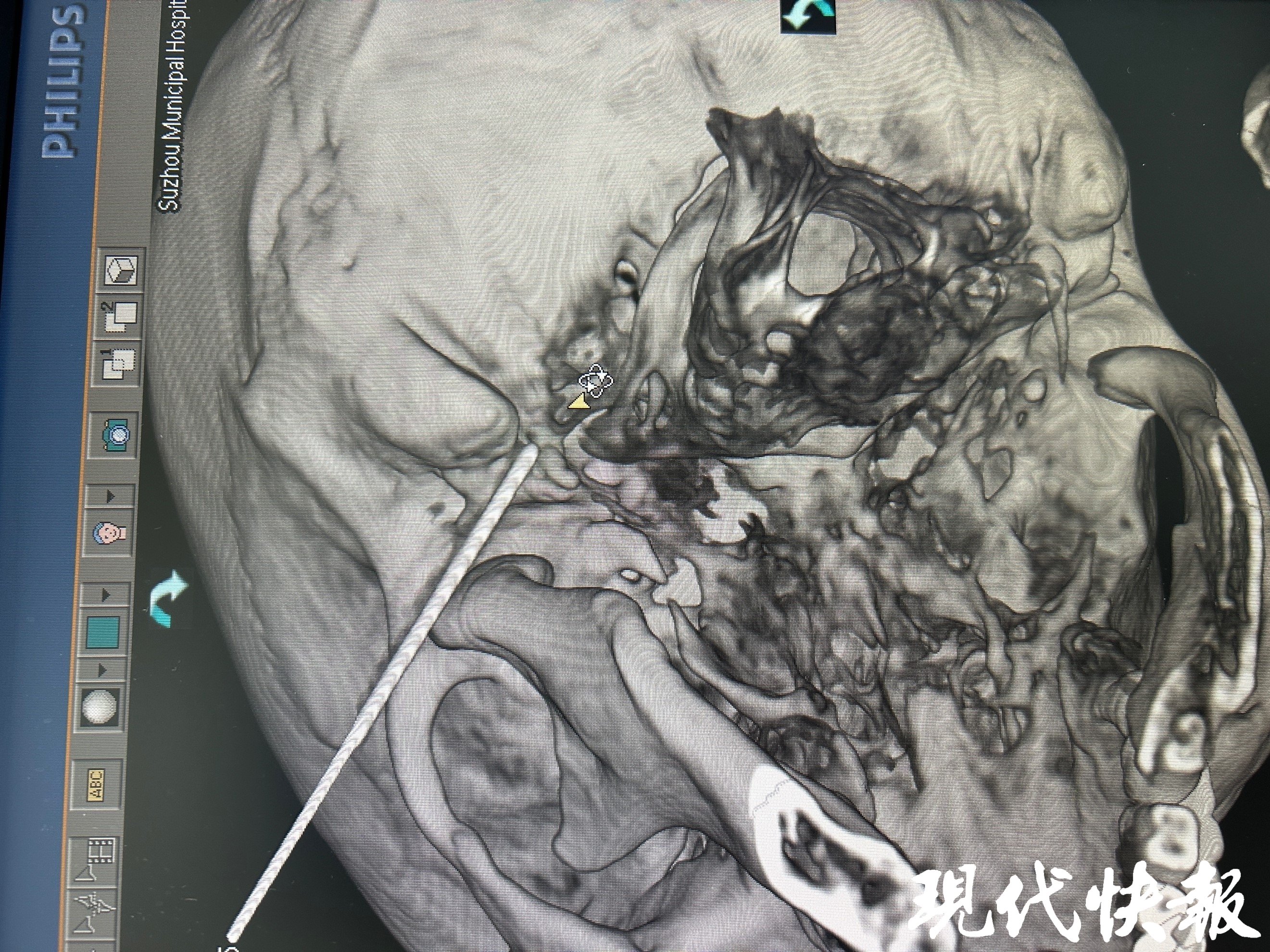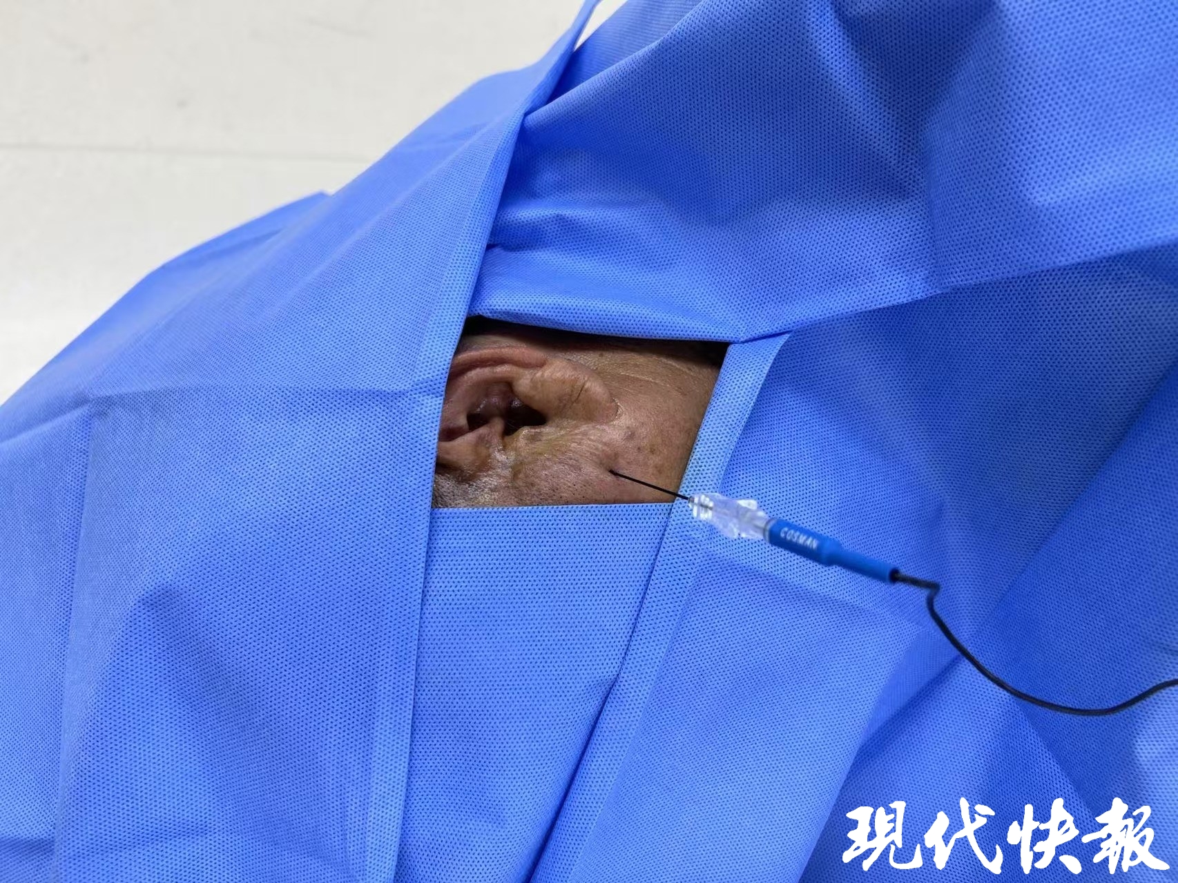 针对其疼痛及面瘫症状,王卉对张先生进行了神经调控治疗。术中使用一根细针,通过3D导航无痛介入微创治疗技术,直达面神经出颅的茎乳孔,然后进行15分钟左右的脉冲射频治疗,无任何切口。