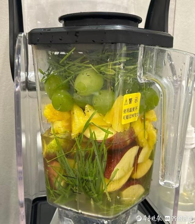 “购买‘清体小麦草’这款饮品,我们会赠送顾客一小杯小麦草,这也是我们的原材料之一。”店员介绍,该款饮品原材料包括小麦草、苹果、凤梨、青提和茶底,几种食材放进破壁机现场榨汁,“半天多的时间,已经卖出了三四十杯”。