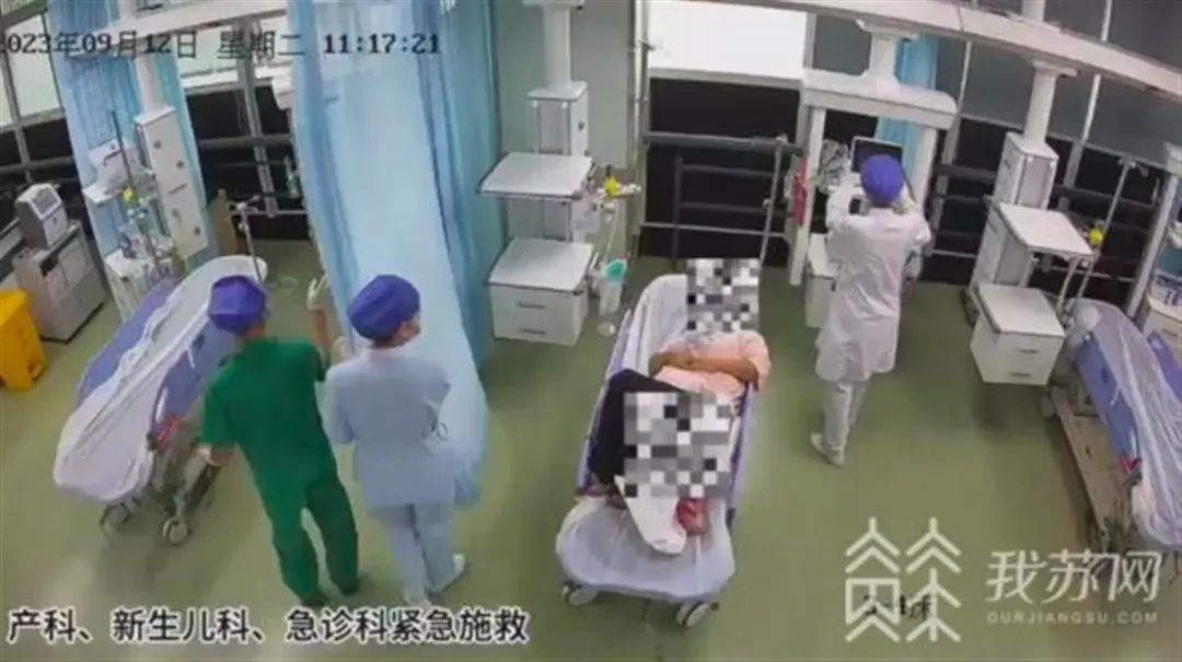 苏北人民医院急诊科副主任护士陈颖说:“患者来的时候肚子稍微偏大一点,然后我们当时就问她有没有怀孕?她说没有怀孕,平时就是这么胖;我们也问她月经有没有不正常,她说月经是正常的,然后病人要去上厕所,过了一会她老公突然过来喊我们了,说他老婆在厕所里面生了一个孩子下来,我急忙跑到厕所里面去,看见患者还蹲在厕所里面,一个小胎儿已经掉在马桶坑里面去了,在哭,我怕马桶的水会把小孩子冲下去,立马就帮她从马桶里面把她掏了出来。”