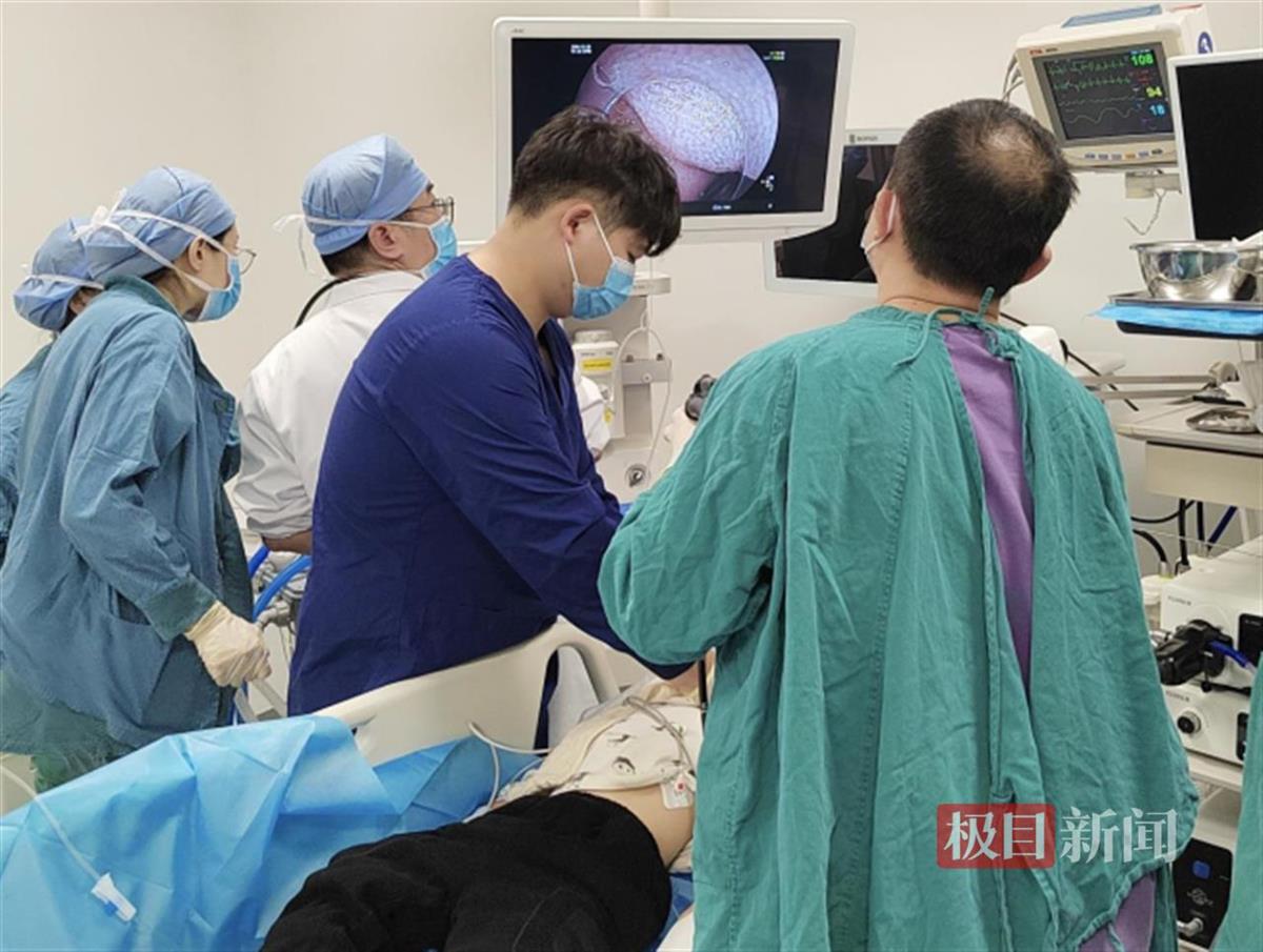 武汉市第一医院盘龙城院区消化内镜中心,紧急为男童进行全麻、气管插管下胃镜检查及操作,成功取出异物(通讯员徐桂林供图)