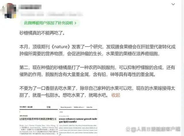 砂糖橘含大量果糖致癌?这种说法完全站不住脚!