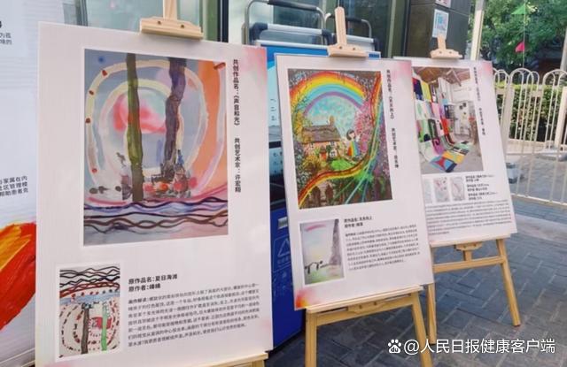 北京安定医院世界精神卫生日义诊活动现场,展出患者与艺术家共创作品。侯佳欣摄