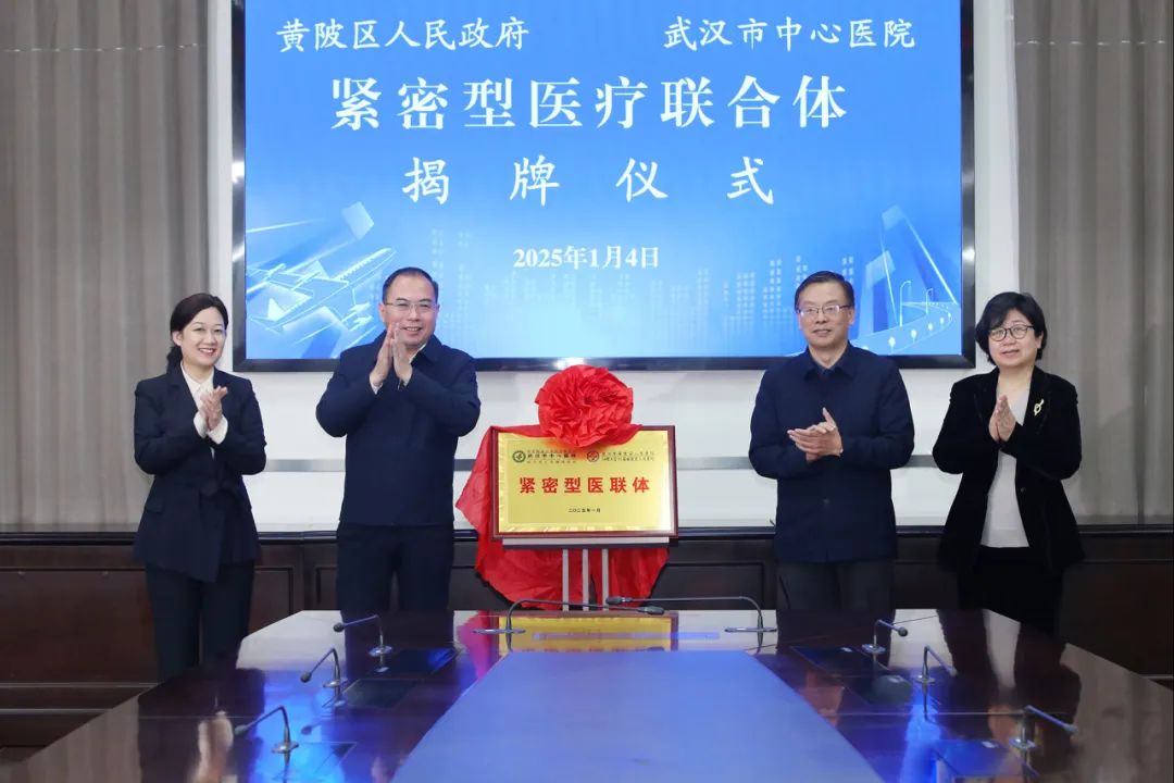 武汉市人民政府副市长张忠军,市卫健委党委书记、主任郑云,黄陂区委书记何建文、区长张劲、区人大常委会主任陈军、区政协主席熊定萍,市中心医院党委书记王卫华、院长蔡威等领导见证签约并揭牌。