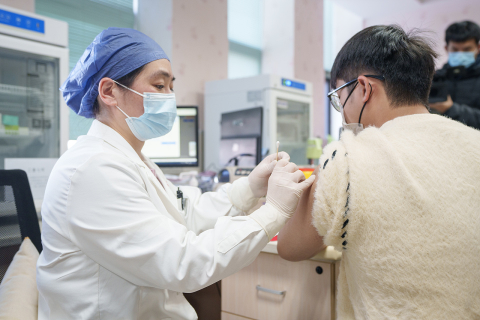 1月13日上午,HPV疫苗男性适应症获批后,浙江首批、杭州首针男性HPV疫苗在杭州西湖区三墩镇社区卫生服务中心开打,24岁的朱先生成为首位接种人。