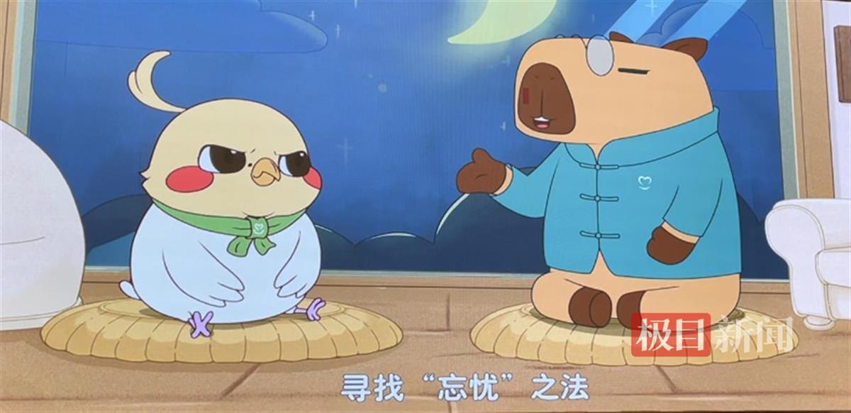 极目新闻记者采访了解到,心理科普动画《忘忧小铺》由湖北省阳光心理健康服务公益基金出资,湖北省疾病预防控制中心和湖北东方明见心理健康研究所精心策划,武汉文旅集团中影时代公司打造,是一部旨在提升公众心理健康素养的系列心理科普动画剧集。《忘忧小铺》分为两季制作,每季包含24集,每集时长为2分钟。故事围绕一家名为“忘忧小铺”的书吧展开,书吧中有两位心灵守护者——拥有治愈魔力的店长大叔“卡卡”和可爱热情的暖心店员“啾啾”。动画主角采用动物形象拟人化的形式,以朋友的视角展开叙述,将复杂的心理问题生动演绎,帮助观众更好地理解心理问题。