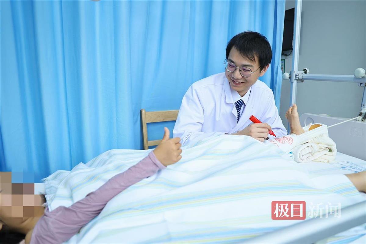 在医院,由于疼痛和恐惧,萱萱哭闹不已,给治疗造成一定难度。接诊他的关节外科住院医师祁连山,拿出自己平时准备的小女孩喜欢的漂亮贴纸,跟萱萱说:“萱萱乖,贴上超级飞侠贴纸,我们一起把伤痛小怪兽赶跑!”帮助萱萱的情绪慢慢稳定下来。