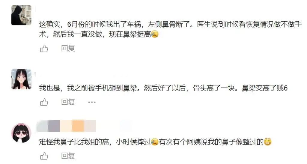江苏女士“喜提”高鼻梁的案例,引起一众网友的羡慕,“因祸得福,这比隆鼻快多了,既省了手术费,还是健康原装的,堪称鼻梁断骨增高术,平地起高楼。”