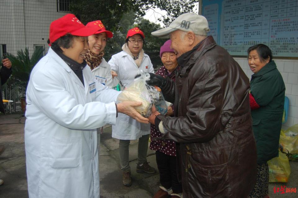 ▲杨必纯看望社区老人 医院供图
