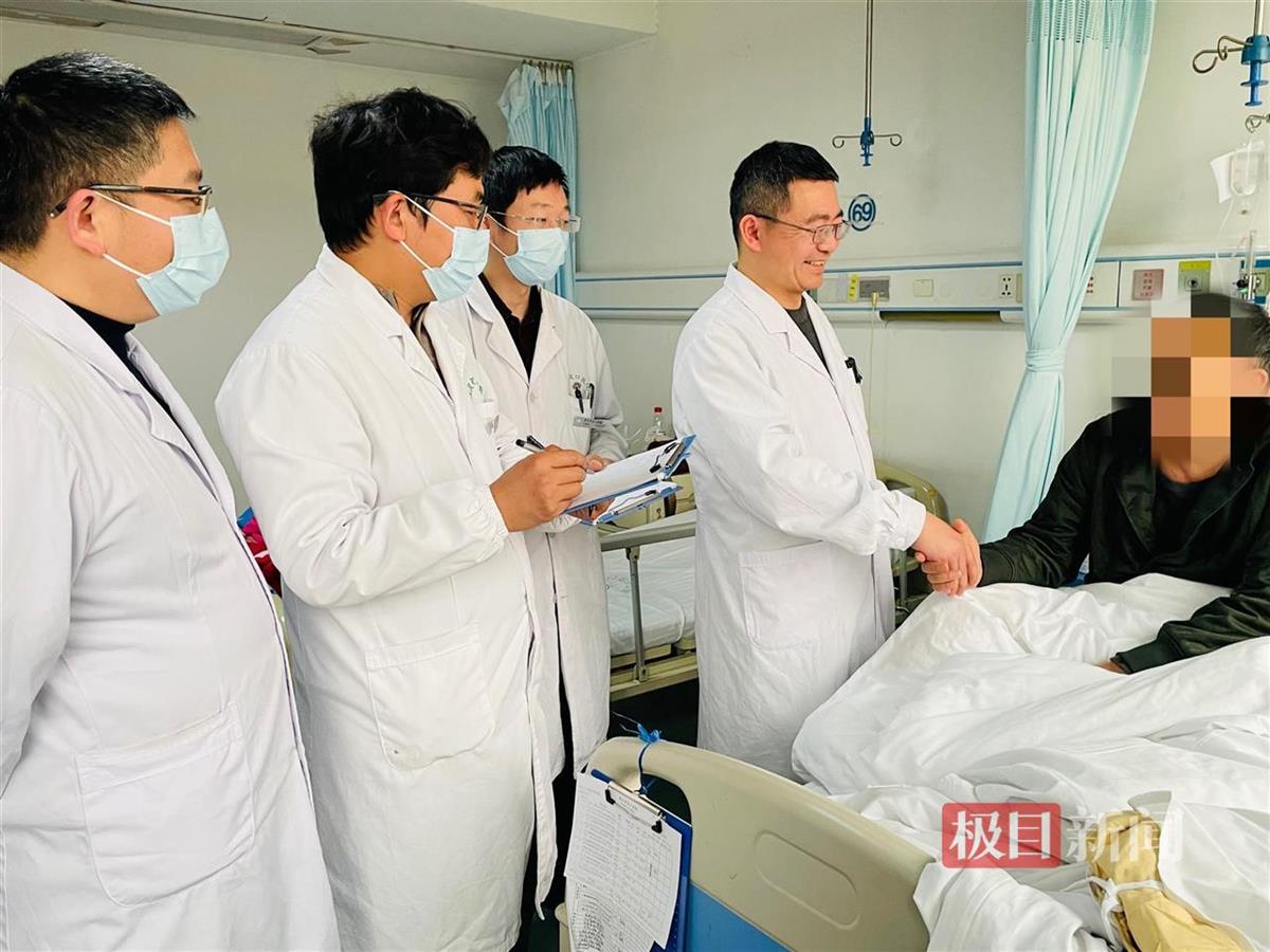 孙先生(化姓)出院前,向武汉市汉口医院医生致谢(极目新闻记者郑晶晶摄)