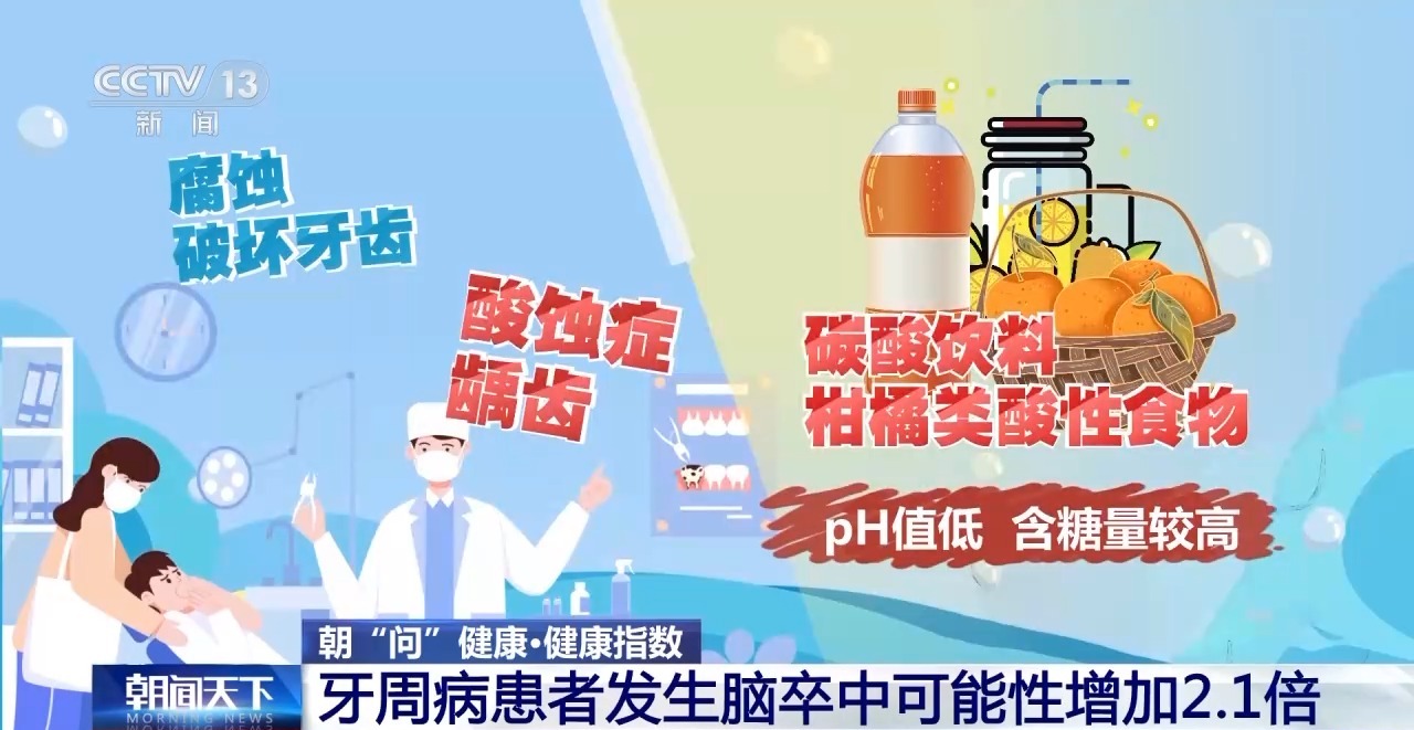 碳酸饮料、柑橘类酸性食物pH值低、含糖量较高,可能腐蚀、破坏牙齿,从而引发酸蚀症或龋齿。