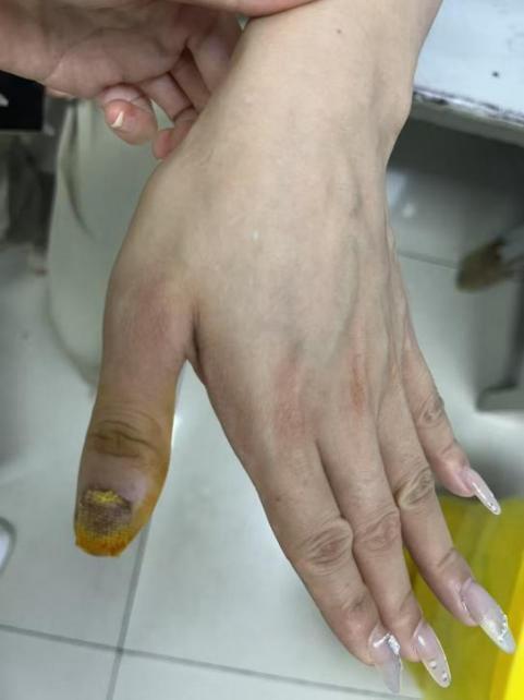 长沙的孙女士在年前做了一个美美的延长甲,甲面上点缀了水钻和蝴蝶结,让十指更加纤长秀美。然而过年期间在家玩闹拉扯时不小心导致左手小拇指指甲断裂,流血不止。锥心般的疼痛让孙女士忍不住尖叫,受伤的手指更是一触碰便疼痛难忍,她不得不前往医院处理。