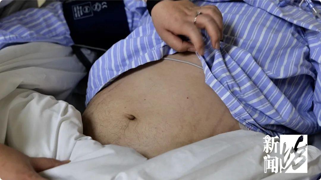 “患者肚子上有‘妊娠纹’,就是俗称‘肥胖纹’,脂肪太多了,以至于把肚子撑破了。他体重在180斤以上,还伴有其他基础疾病,是高脂血症型胰腺炎的高危患者。”董淑祎医生说。