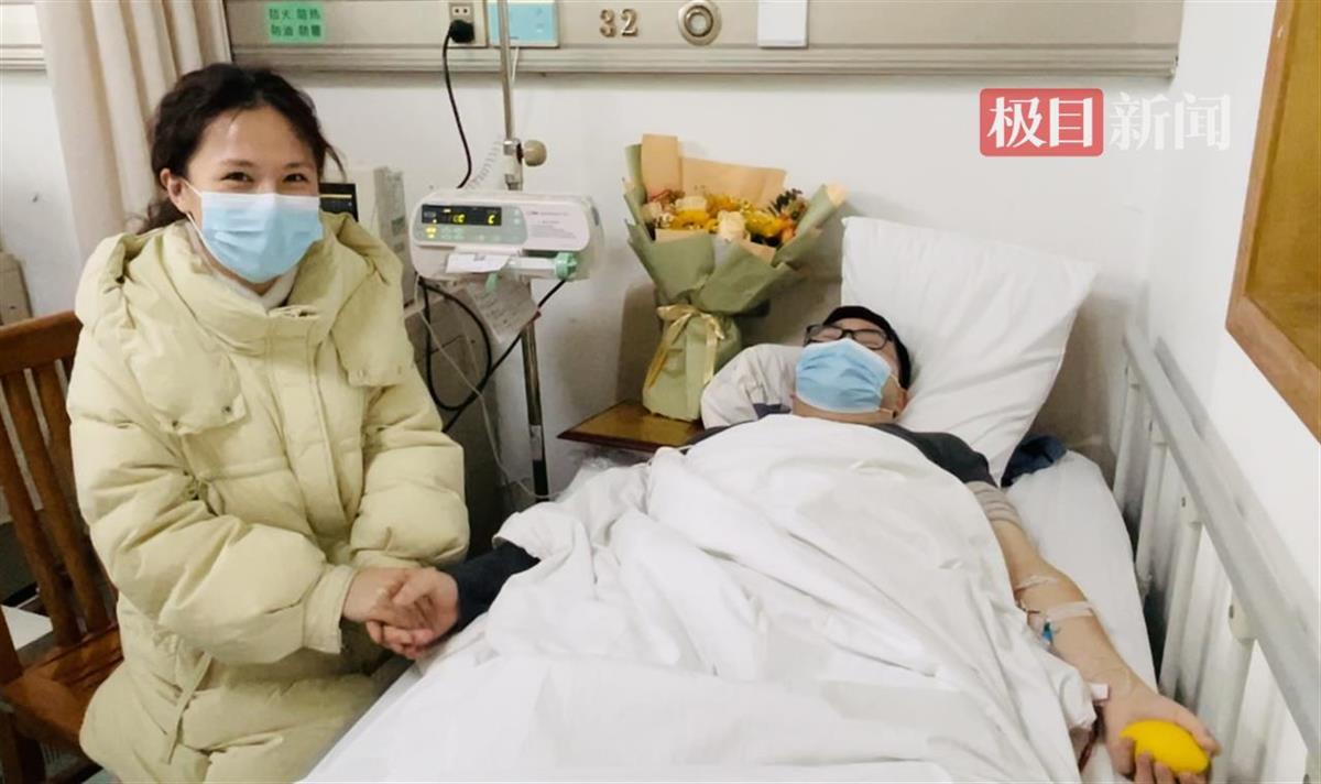 李先生捐献时,已怀孕2个月的妻子一直陪在他的身边(极目新闻记者 郑晶晶 摄)