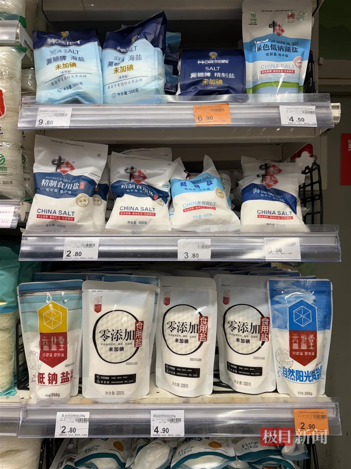 2月18日,记者来到武汉市武昌区水果湖的一家大型超市,在调味品区的货架上摆了各种品牌的食用盐,如精制食用盐、未加碘食用盐、“零添加”食用盐、海盐、低钠盐等。其中,袋装低钠盐多为小包装,不同品牌的售价在2.8元至4.5元,相比普通食用盐的价格略高。例如,一袋标价同为2.8元的袋装盐,普通食用盐克重为400克,而低钠盐克重为268克。“确实有不少市民是冲着低钠盐来的。”超市一位工作人员介绍,尤其是年轻人追求健康,低钠盐正好符合他们的健康理念。