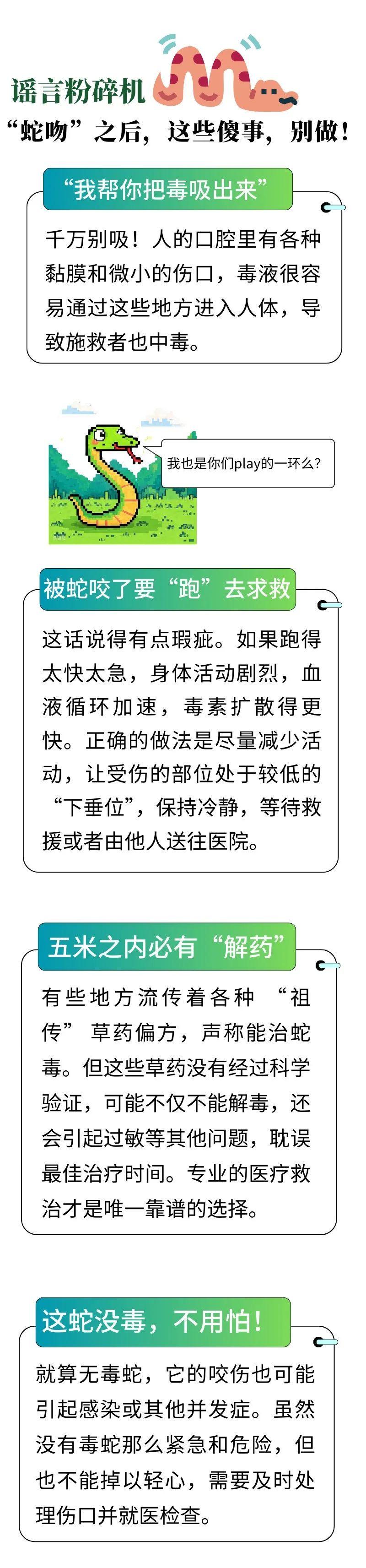 被咬之后不要慌张,更不要来回跑动,应该把自己当作一只“小乌龟”,以静制动,保持坐姿等待救援,尽量不要“躺平”,目的也是为了减缓毒液扩散全身的速度。
