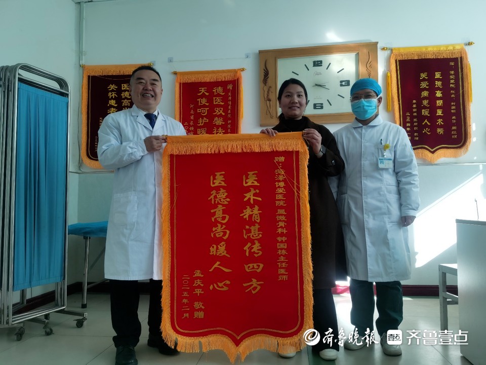 近日,菏泽博爱医院上演暖心一幕:孟女士手持锦旗,专程向该院首席专家钟国栋主任医师表达谢意。这场“跨越山海的信任奔赴”背后,是一段感人至深的医患故事。