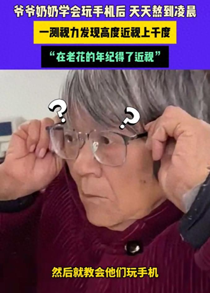 2月21日(发布)山东 爷爷奶奶学会玩手机后 天天熬到凌晨,一测视力发现高度近视上千度,“在老花的年纪得了近视。”
