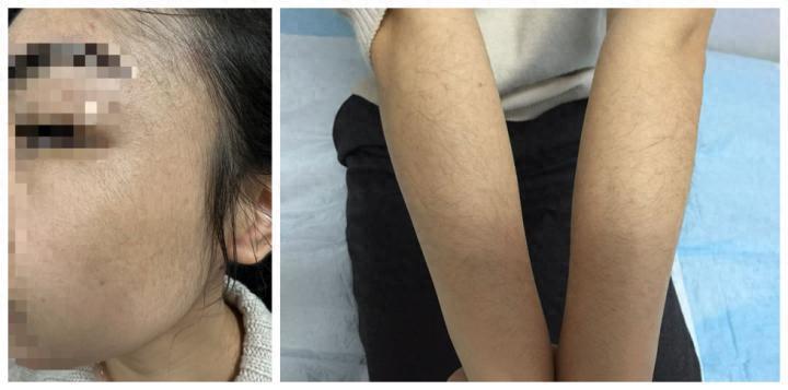 然而,大半个月后,小侯发现自己的发量并没有明显改善,反而额头、脸颊、唇周甚至手臂上的汗毛变得又粗又黑,整个人看起来像极了“小毛人”。惊恐之下,小侯赶紧前往杭州市第一人民医院皮肤性病科求助。
