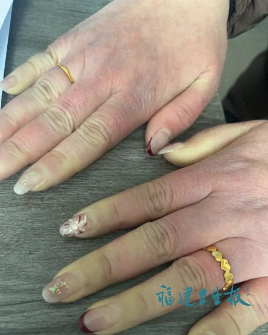 一年前,黄女士发现手指经常肿胀、紧绷,戴戒指的手指常被勒得发白,面部皮肤也异常紧绷。为此,她辗转多家医院,皮肤科、骨科、中医科等,都查不出任何问题。