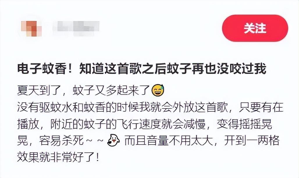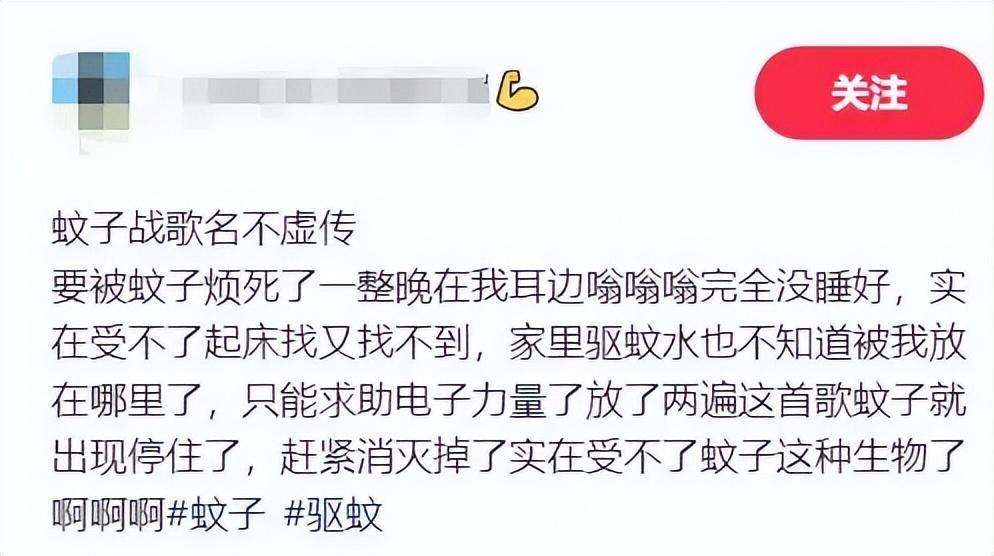 对此,广东省科学院动物研究所刘博士表示,蚊子主要是通过头部的鞭毛来感知声音的震动,雌蚊在交配的时候,也是以震动来(感知对方),音乐的频率可能刚好和蚊子的频率相同,就会导致它攻击的欲望降低。据介绍,声音对蚊子的影响应该只停留在感官的层面,并非是某一歌曲有神奇功效,而且对于蚊子来说,听觉也并非是其感知外界的主要手段。