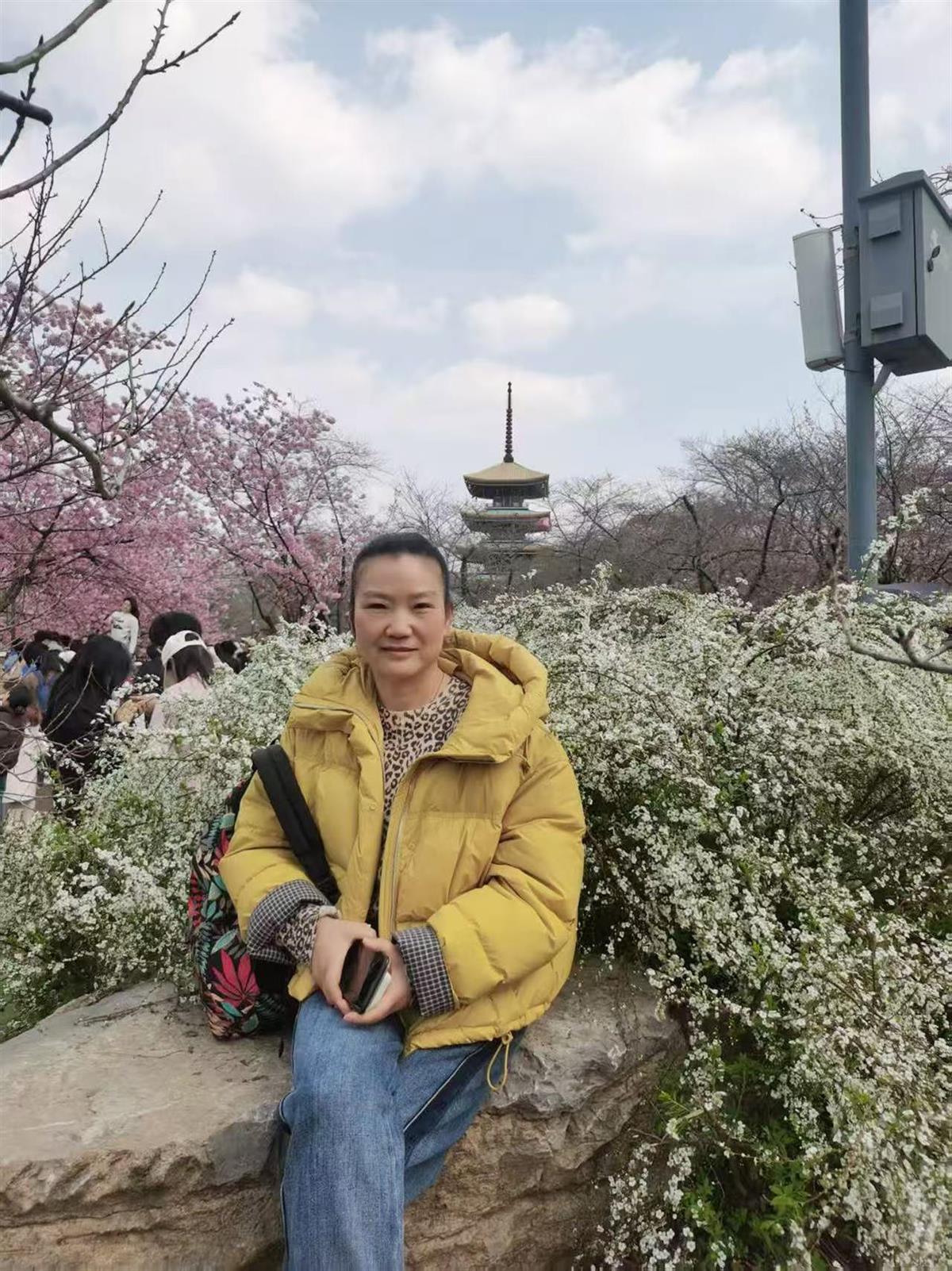 献完血后的张淑敏和丈夫一同“打卡”樱园,留下难忘回忆(张淑敏提供)