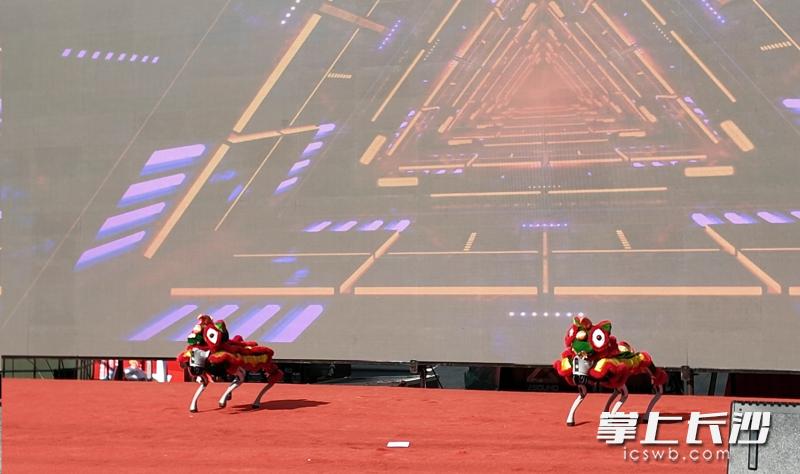 两只身披彩衣的“机器狗”来到活动现场,为观众带来精彩的舞蹈,引得众多市民驻足观看。