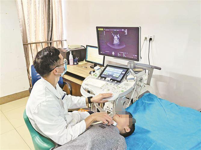 患儿接受腺样体超声检查。