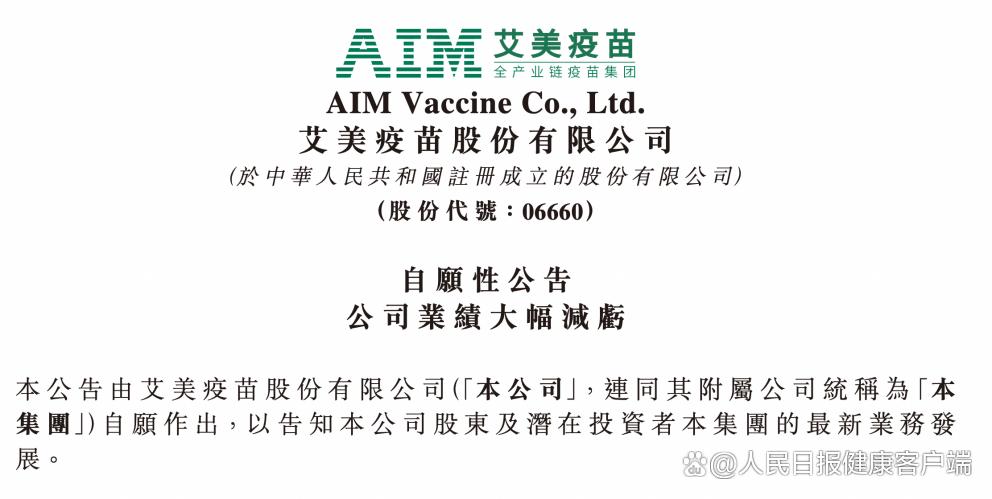 艾美疫苗在港交所发布公司业绩大幅减亏公告。艾美疫苗官网图