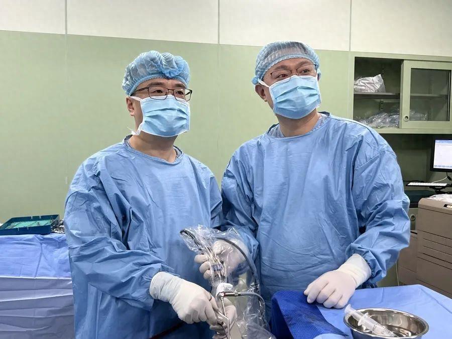 吴教授(左)在为患者做手术