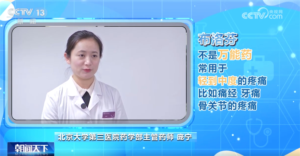 北京大学第三医院药学部主管药师庞宁称:“布洛芬并不是万能药,布洛芬常用于轻到中度的疼痛,比如说痛经、牙痛,还有骨关节的疼痛。但是对于一些胆绞痛,还有胃肠道引起的一些平滑肌的绞痛它是无效的,还有一些重度的疼痛也是无效的,包括重度的创伤引起的疼痛等等。”
