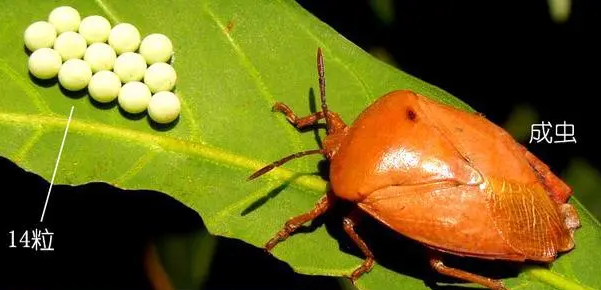 福建农林大学研究员刘长明介绍,“14粒是它的最大限度,荔蝽每次产卵数量不可能多于14粒”。所以,常见的卵块确实多为14粒。