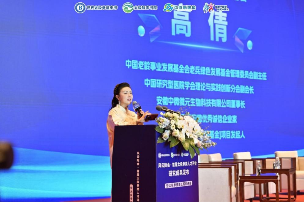 中微微元生物董事长高倩表示:“太极拳不仅能够增强体质,提高免疫力,还能够调节情绪,缓解压力,对促进人类健康和和人的全面发展有不可替代的作用。望未来携手并进,共同努力,将太极拳这一优秀传统文化发扬光大,成为促进身心健康、和谐社会的有力武器。”
