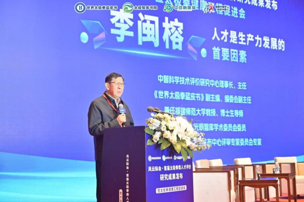 开幕式上,《世界太极拳蓝皮书》编委会副主任、副主编,中智科学技术评价研究中心理事长、主任李闽榕教授强调,太极拳作为中华文化瑰宝,其人才培育与评价体系是推动健康中国战略落地的重要抓手。
