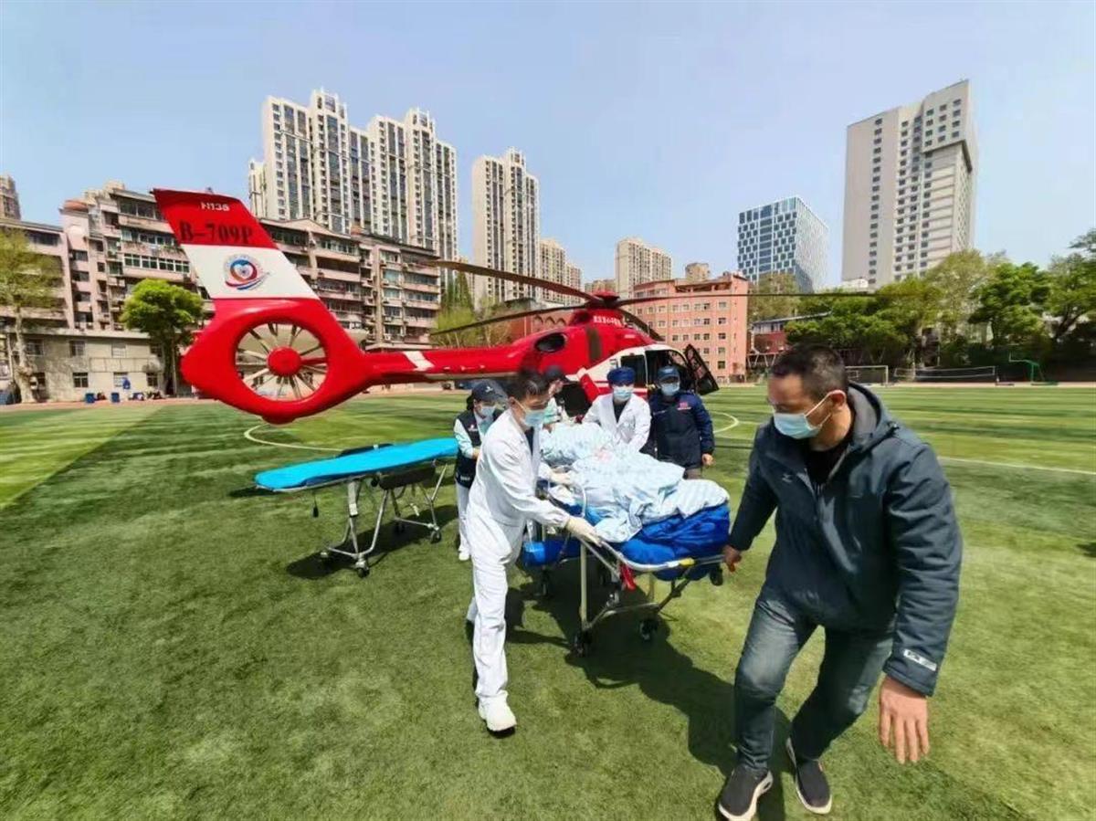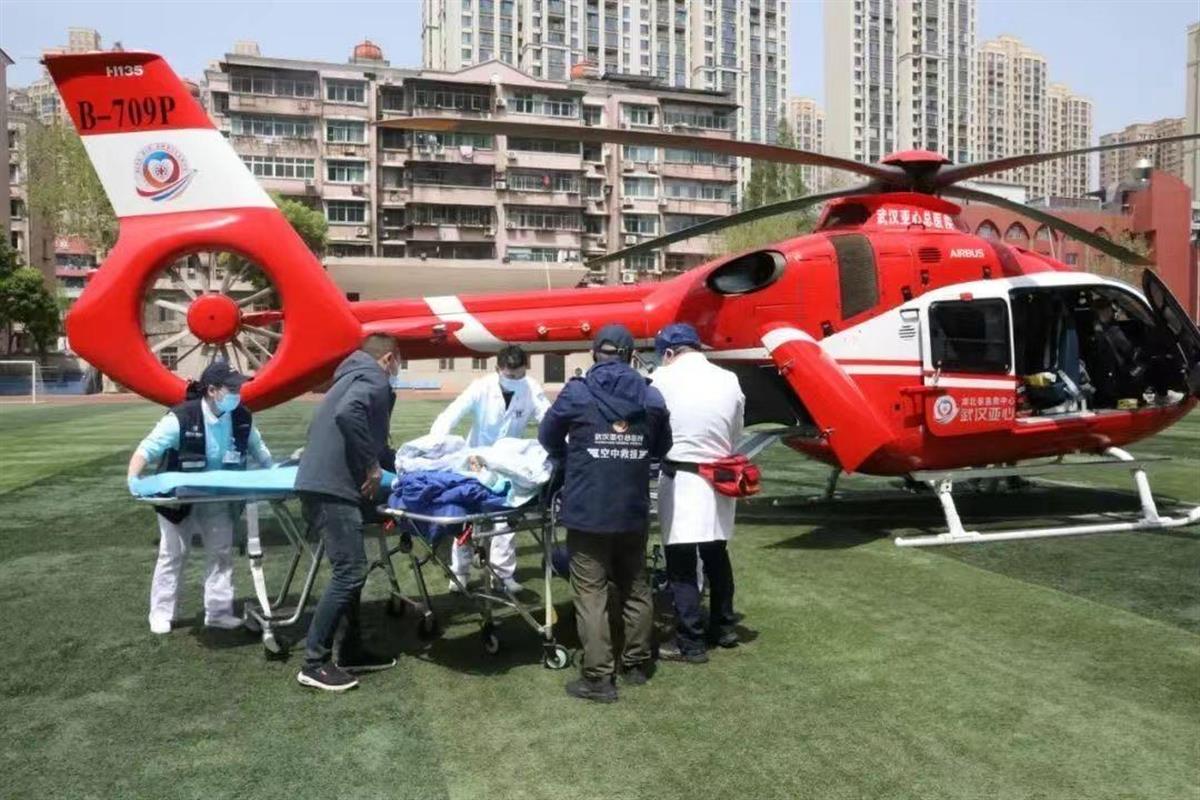 12时34分,救援直升机从大冶起飞;13时整,飞机准时降落在武汉大学医学部操场。整个转运过程精确到分钟,为抢救赢得宝贵时间。