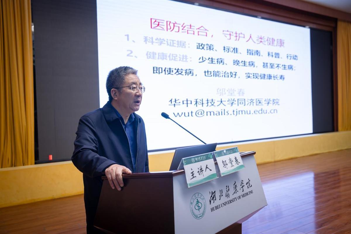 论坛邀请中国科学院院士邓子新教授,中国工程院院士邬堂春教授,中国工程院院士金梅林教授,中国工程院院士刘超教授,华中科技大学副校长、同济医学院党委书记张勇慧教授等高校权威专家学者齐聚湖医药,共襄学术盛宴。师生代表800余人现场聆听。湖北医药学院党委副书记、校长罗杰主持。