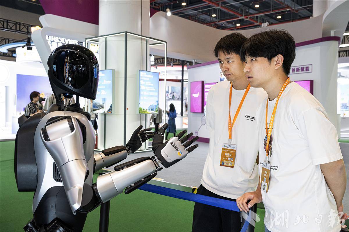 4月8日,在本届健博会主会场武汉光谷科技会展中心,东阳光展台展示的光谷东智机器人。(湖北日报全媒记者任勇摄)