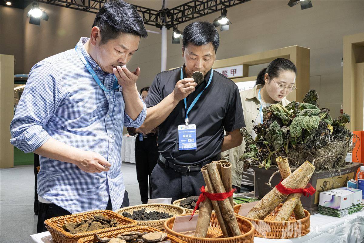 4月8日,在本届健博会主会场武汉光谷科技会展中心,“十大楚药”展台展示的中药材吸引与会嘉宾驻足。(湖北日报全媒记者任勇摄)