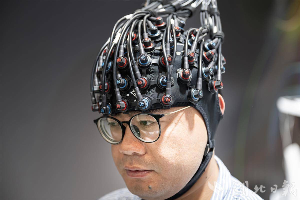 4月8日,在本届健博会主会场武汉光谷科技会展中心,依瑞德展台展示的近红外脑成像设备。(湖北日报全媒记者任勇摄)
