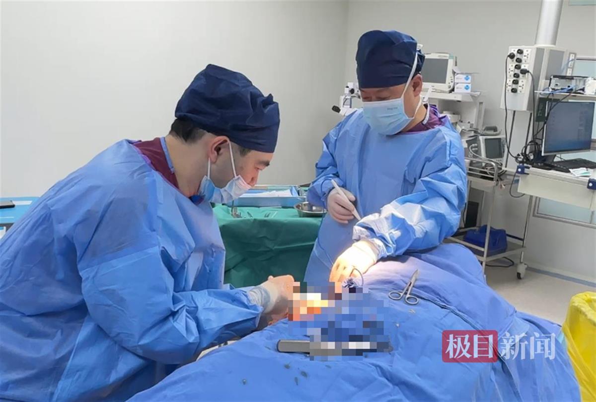 4月7日,手术顺利进行。黄磊团队通过5厘米的切口,历时90分钟的精细操作,完整取出了脂肪瘤组织。术中,他还使用整形美容特有的减张缝合技术,力求术后皮肤平整。“由于瘤体巨大,切除后背部形成了哈密瓜大小的皮下空腔,患者需持续穿戴医用弹力束身衣6个月,通过加压促进皮肤与深层组织贴合,同时配合术后抗瘢痕治疗美化伤口外观。”黄磊说。
