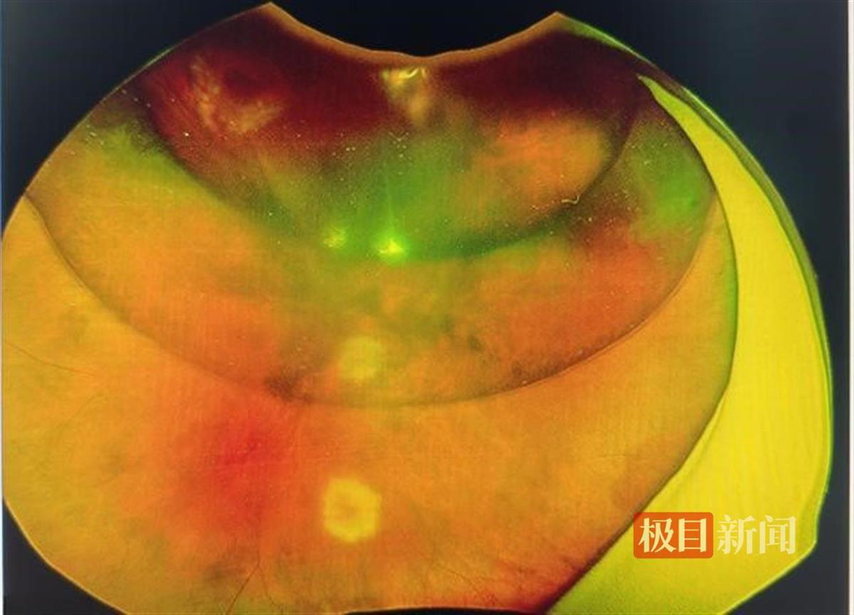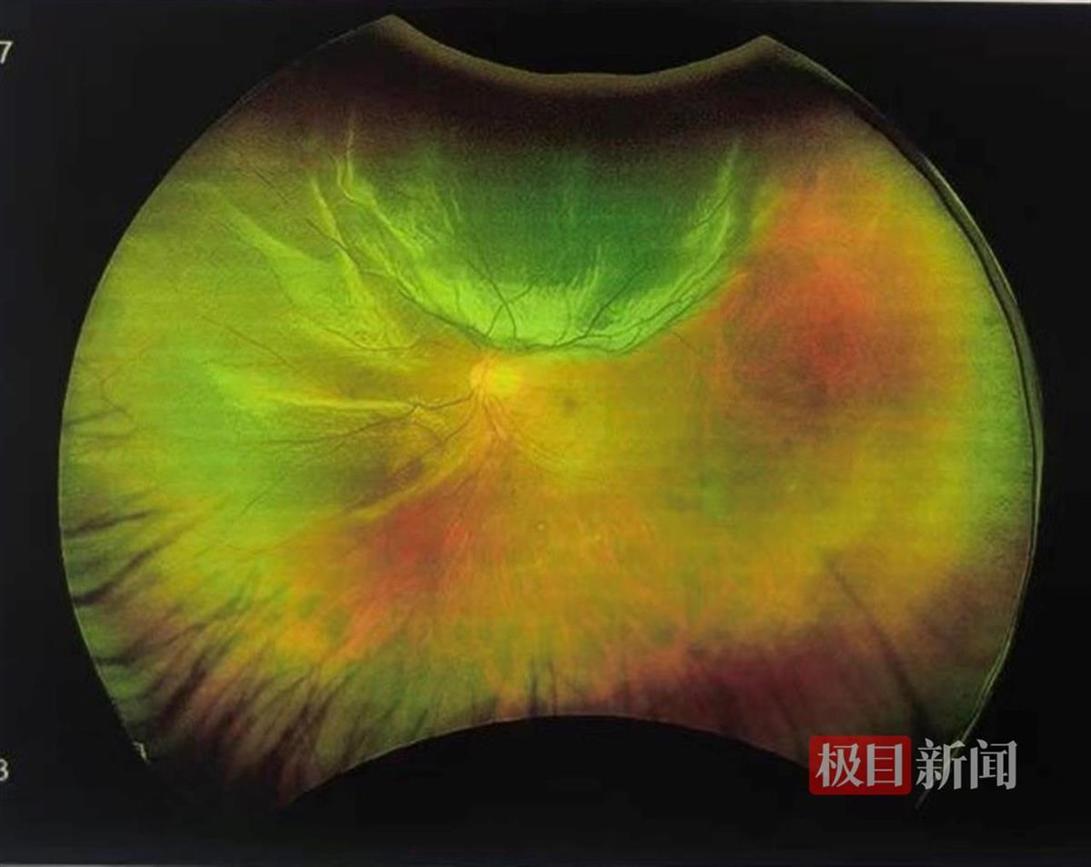4天前,高先生突然感到左眼视力模糊,仿佛被一层幕布遮挡。起初他并未太在意,但随着时间推移,他感觉遮挡的范围在逐渐扩大,于是前往武汉大学人民医院洪山院区就诊。经检查,医生诊断高先生的左眼患有“孔源性视网膜脱离”,即视网膜上方出现了裂孔,幸运的是尚未影响到黄斑区域,但若不及时治疗,视网膜脱离的范围会继续扩大;一旦累及黄斑,可能会导致视力出现不可逆的损伤。