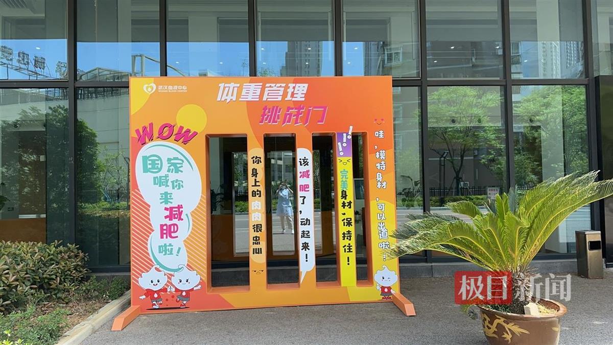 武汉血液中心江南业务楼前的“体重管理挑战门”(闫蕾摄)