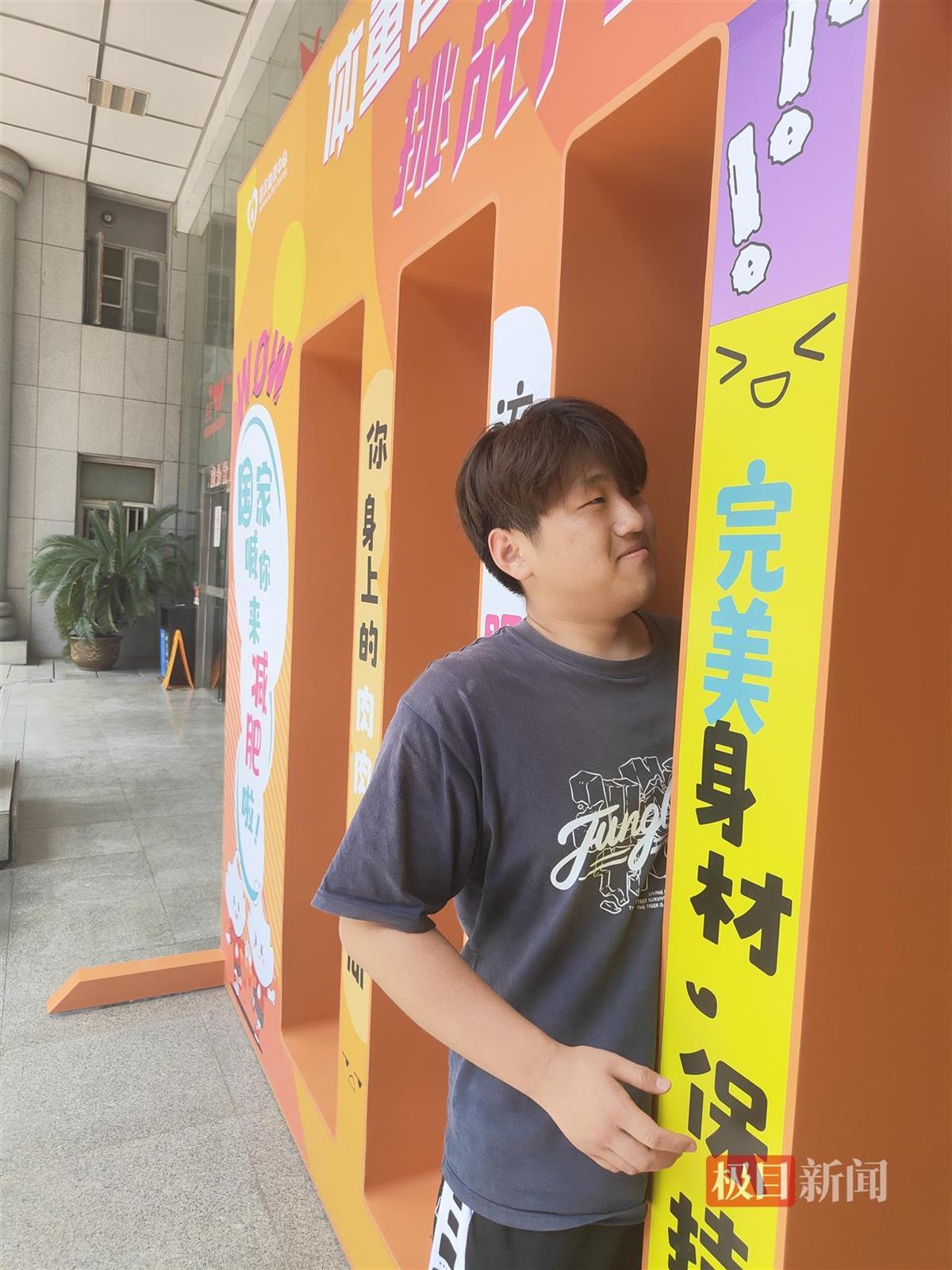 马蓬业正“穿过”体重管理挑战门(肖莉娇摄)