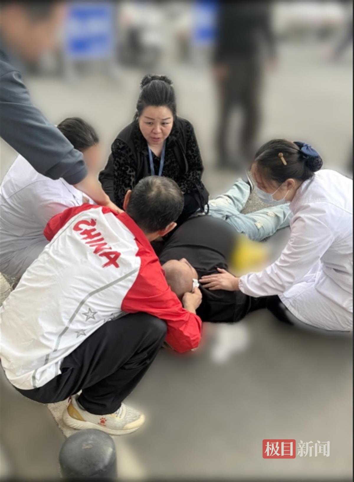武汉血液中心采血护士徐丽佳跪地施救(通讯员刘红摄)