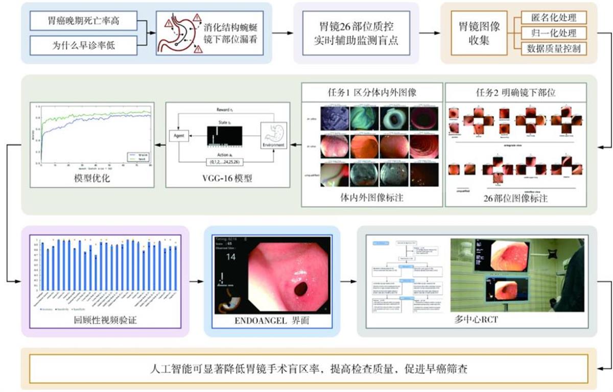 初露锋芒的是胃镜质控系统(WISENSE),它堪称内镜医师的“得力助手”。系统能实时精准提示未检查部位,临床试验数据表明,其成功将胃镜检查盲区率从22.46%显著降低至5.86%(P0.001),为提升胃镜检查质量奠定坚实基础,有力确保患者能接受更精准的胃部检查。