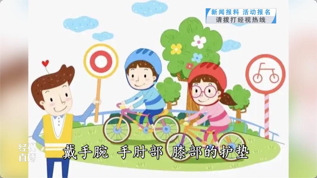 “小孩在骑车的时候不要骑快车,不要有追逐这种危险的动作,可以带一个防护的头盔,再或者带一些这种我们手腕手肘部的膝部护垫。”