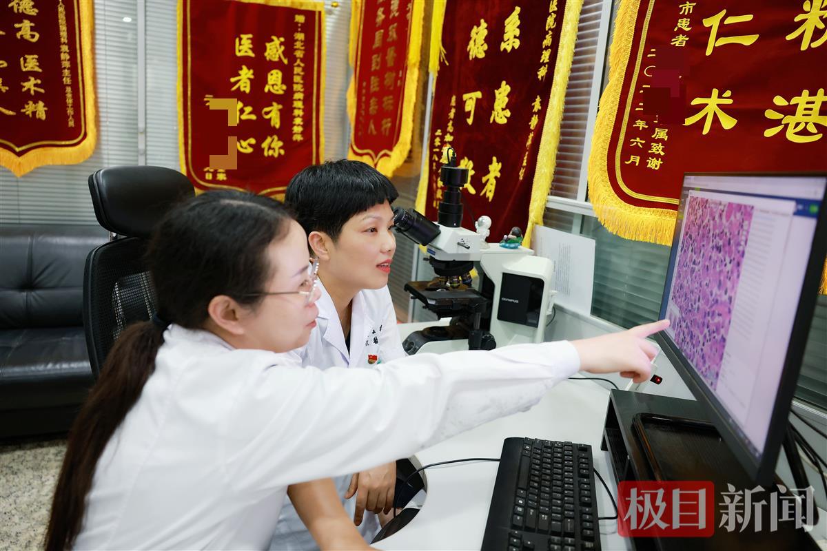 病理科主任袁静萍教授、淋巴瘤亚专科组长何惠华教授“接棒”后,面对仅有的几十个可疑细胞,创新性地应用微量细胞蜡块包埋技术,在极微量的样本中精准捕获了病变细胞,并完成了高难度免疫组化染色。