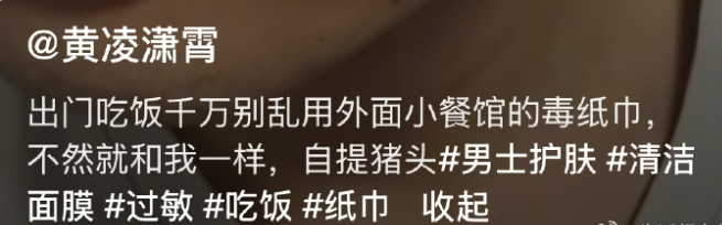 “一个星期都还没好,再也不敢乱用了。”当事人提醒大家:出门吃饭千万别乱用外面小餐馆的“毒纸巾”,不然就和我一样,喜提“猪头”!
