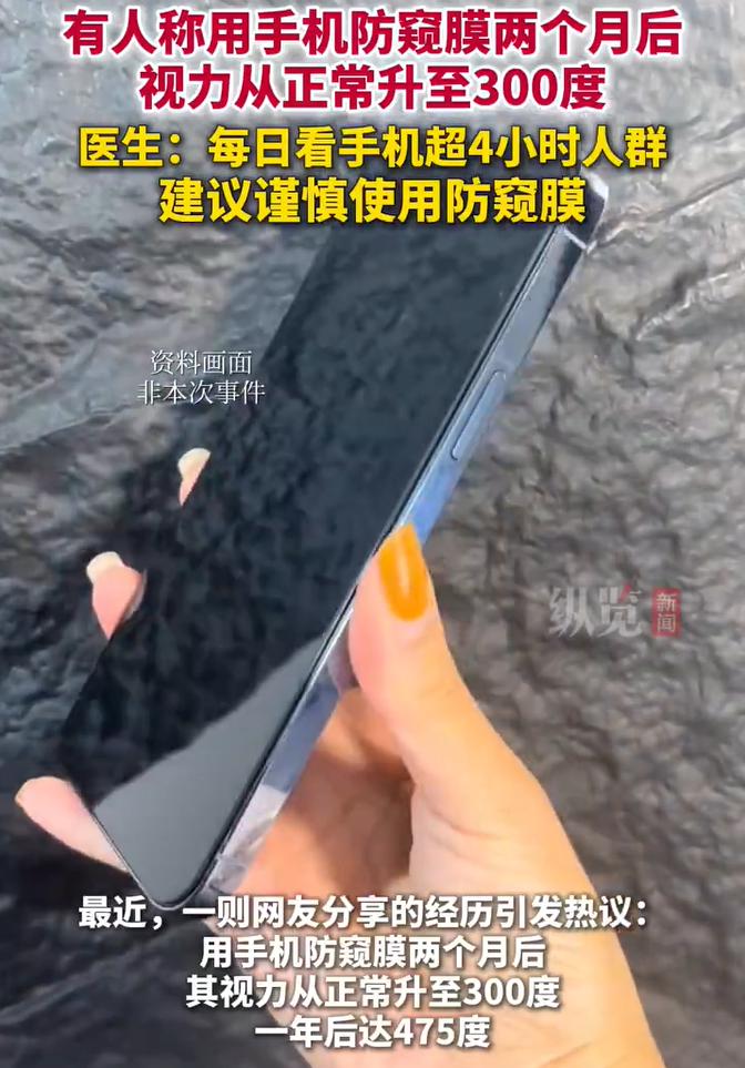 最近,一则网友分享的经历引发热议:用手机防窥膜两个月后,其视力从正常升至300度,一年后达475度。