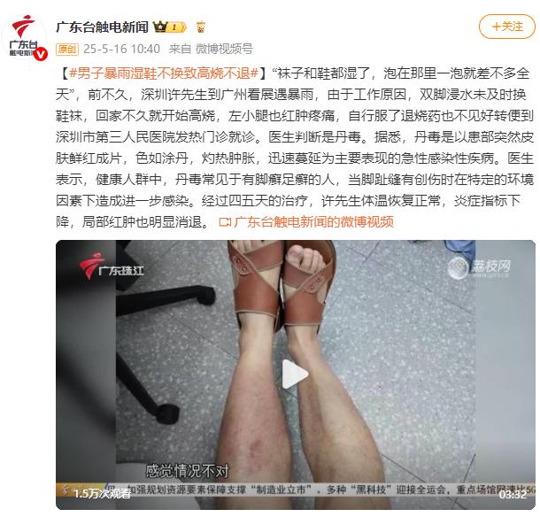 男子暴雨湿鞋一天未换,回家后高烧不退,致丹毒感染!医生提醒