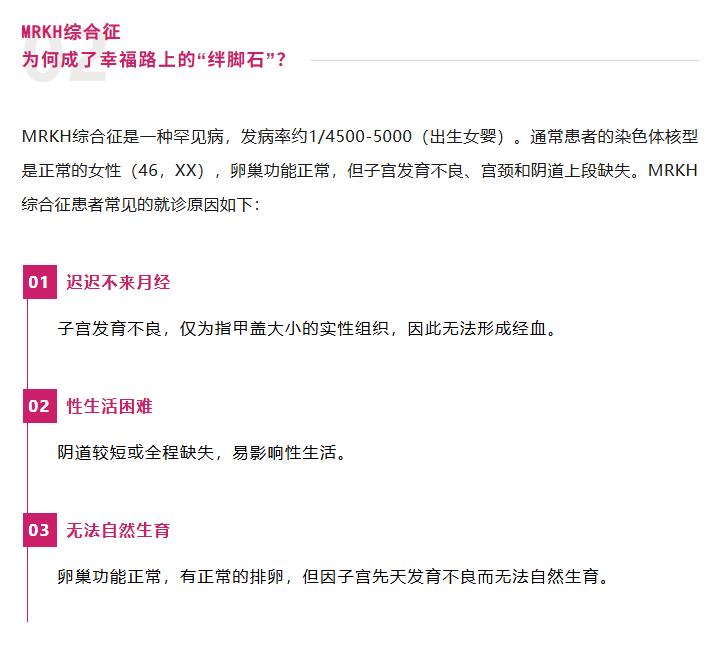 李香娟院长提醒,除了MRKH综合征外,还存在其他生殖道发育异常,若出现16周岁月经仍未来潮或14岁仍无乳房发育征象、成年后同房困难等,建议尽早前往专业的医疗机构就诊。
